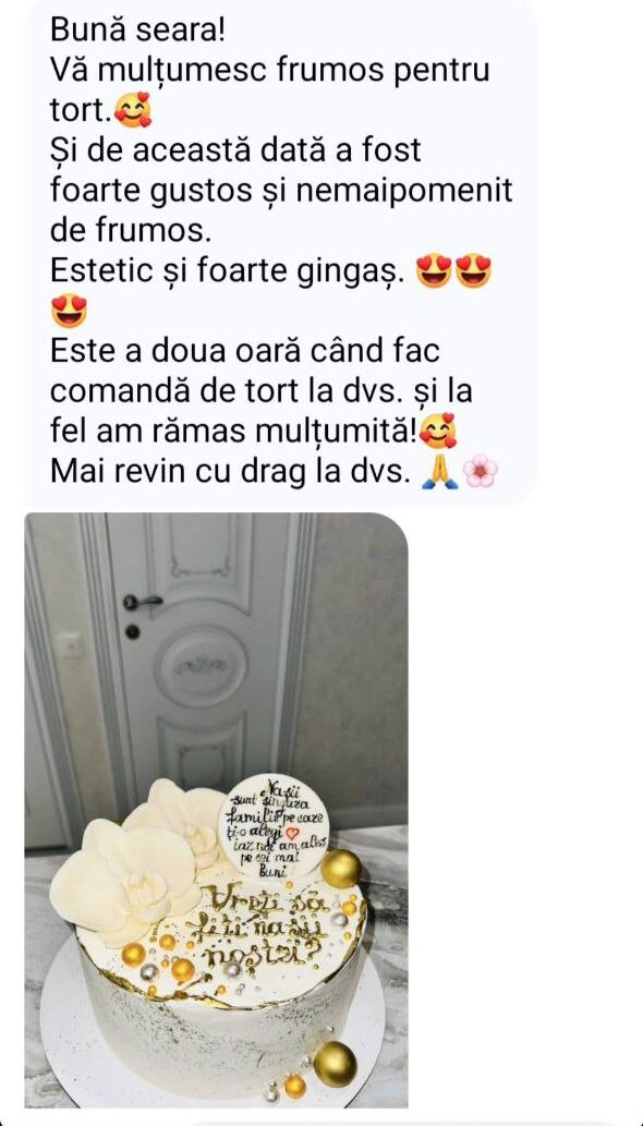 Este a doua oară când fac comandă ded tort la dvs. șa la fel am rămas mulțumită!