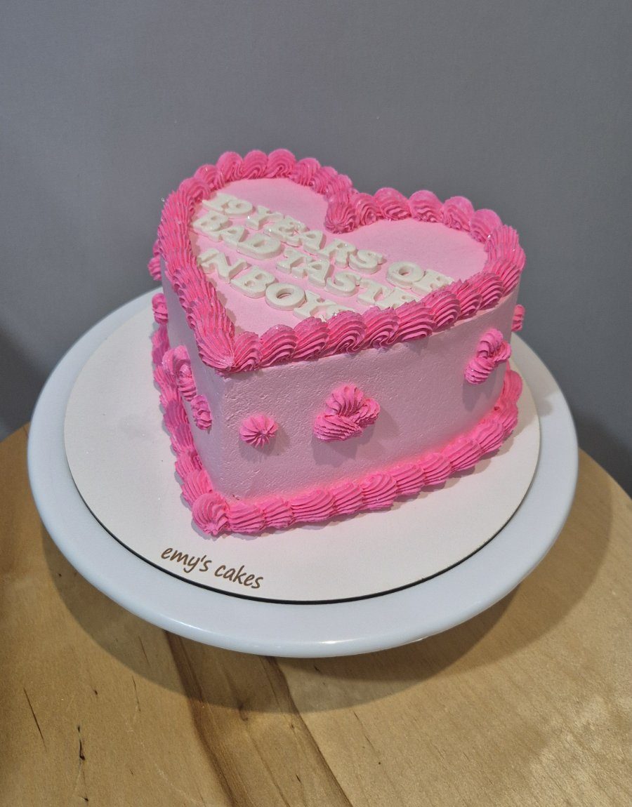 Tort aniversar în formă de inimă, acoperit în cremă fină roz și decorat cu borduri bogate din cremă, ideal pentru zi de naștere sau surpriză dulce pentru prietenă – un tort feminin și vesel, creat la comandă în laboratorul Emys Cakes din Chișinău. Alege umplutura preferată dintre opțiunile noastre delicioase: https://emyscakes.md/umplutura-la-torturi/